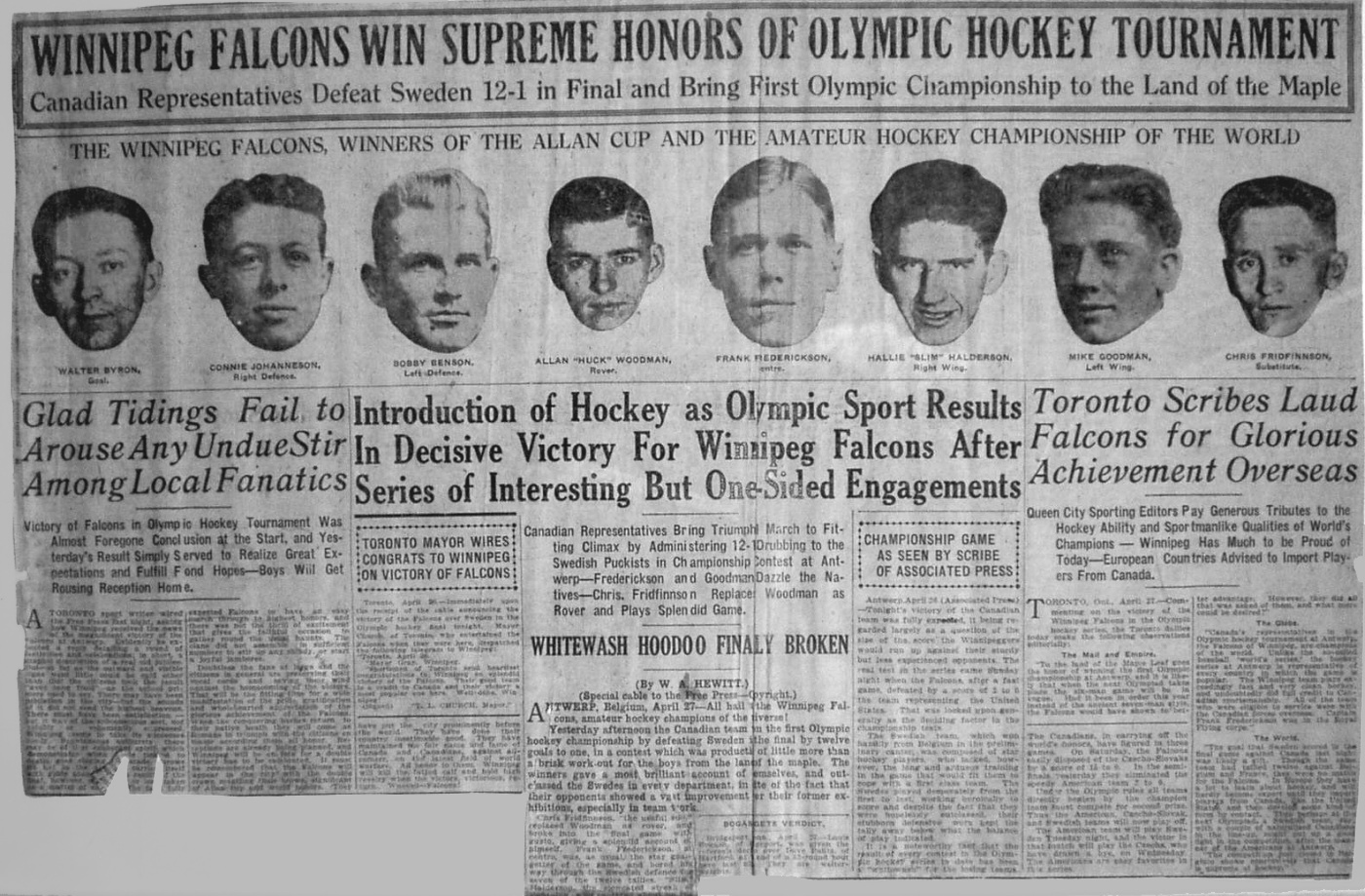 The Falcons are unique among Olympic hockey teams: not only were they the first champions, but because their descendants, almost all of Icelandic heritage,