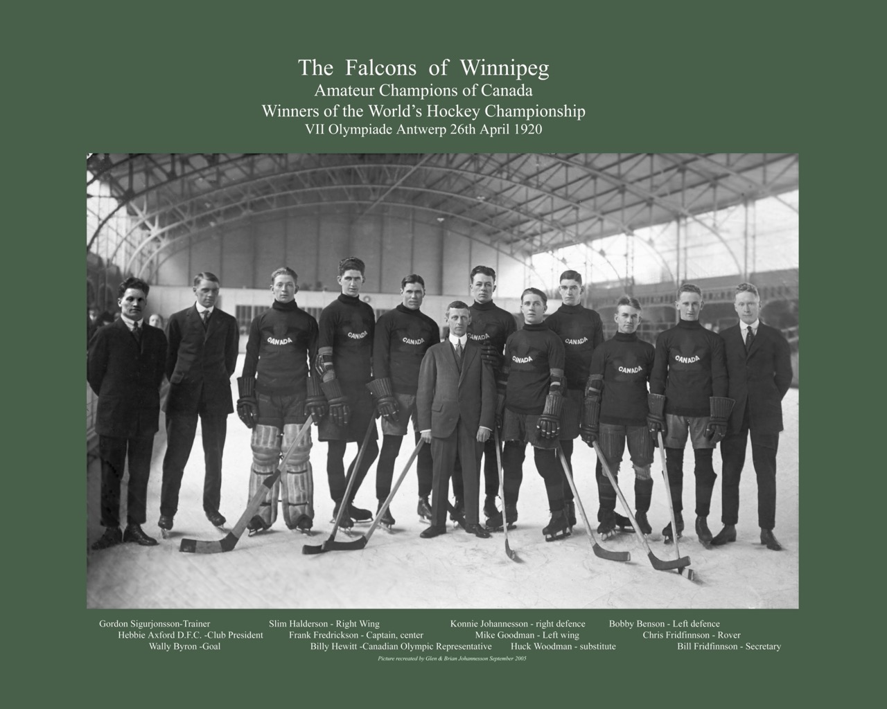 I started this website in September 1999 to re-educate the world about Canada's long-forgotten hockey heroes, the Winnipeg Falcons.
