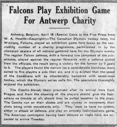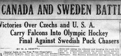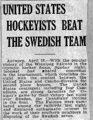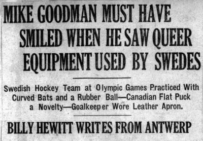 The Swedish team had been playing bandy, rather than hockey as we know it now.
