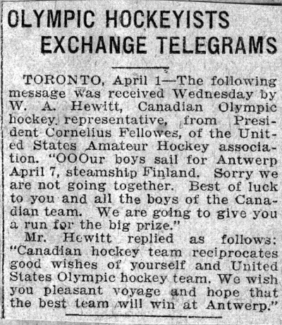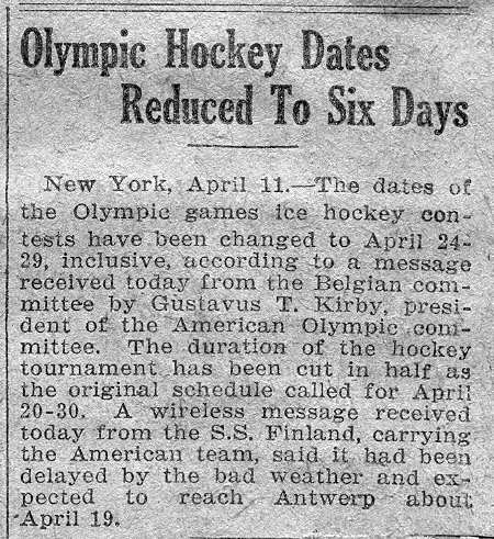 and announced by the Belgian Consul, not the Olympic Committee